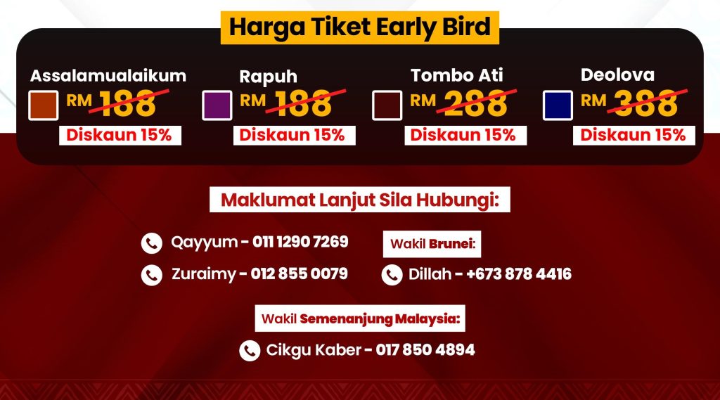 Rebut segera sebelum tiket Early Bird habis kerana kuota amat terhad!