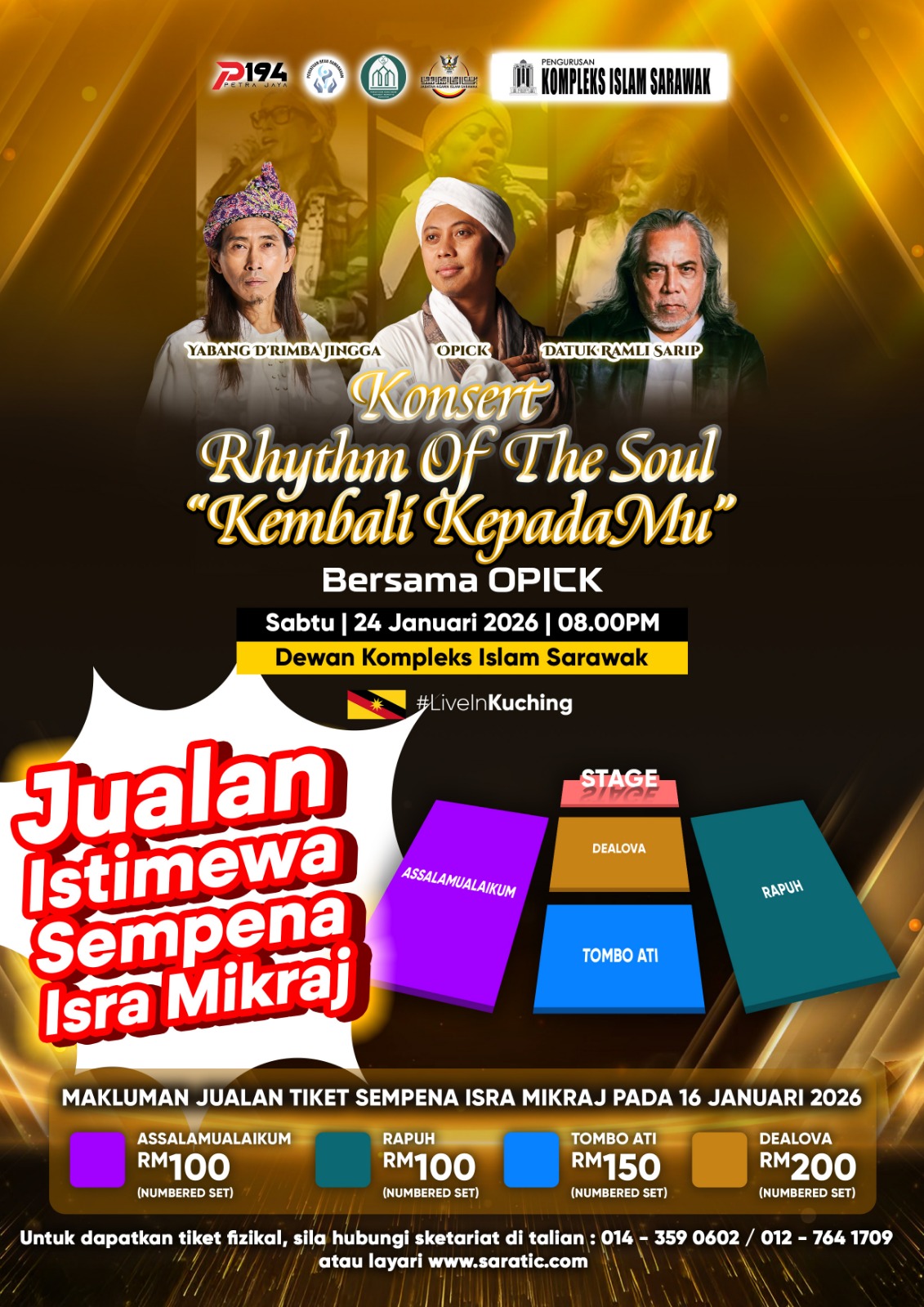 Pada 24 Januari 2026, Kuching bakal disinari dengan sebuah malam penuh makna dan syahdu melalui Konsert Rhythm Of The Soul "Kembali KepadaMu" bersama Opick, bertempat di Dewan Majma Tuanku Abdul Halim Mu’adzam Shah (Kompleks Islam Sarawak).